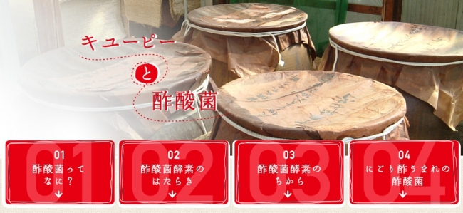 菌の紹介など、酢酸菌について詳しく学べる情報が詰まっています。