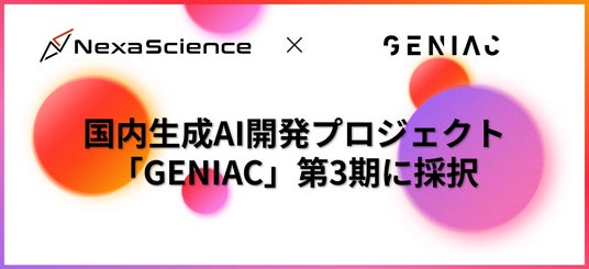AIによる研究・開発の革新を目指す株式会社NexaScience(本社:東京都渋谷区、代表取締役CEO:牛久祥孝、以下「NexaScience」)は、経済産業省およびNEDOが実施する国内の生成AIの開発力強化を目的としたプロジェクト「GENIAC」に採択されました。この採択を受け、NexaScienceは複数のAIが協調して動作するマルチAIエージェントシステムの研究開発を加速します。これにより、専門分野に特化したタスクを自律的に実行できるAIの実用性を高める、新たな方法論の確立を目指します。