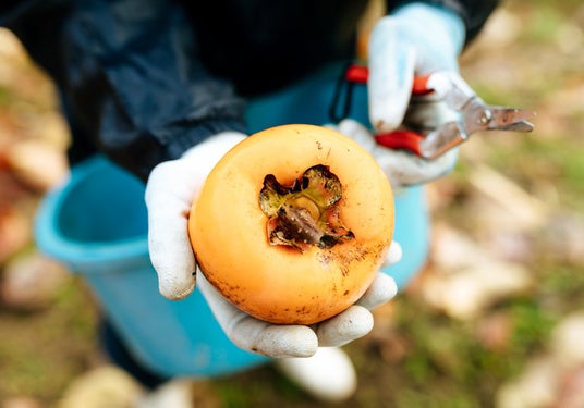 農家の庭に植えられていた渋柿の木から突然変異で生まれた巨大な果実。手野地区ではその柿に特産品としての可能性を感じ、大切に守りながら品質の安定化に取り組んできました。突然変異で生まれ、品種が定義されていないからこそアマテ農園では厳しい独自基準を設け、糖度60度以上・重量80g以上の基準をクリアした個体だけを天授柿としてお届けしています。