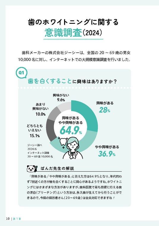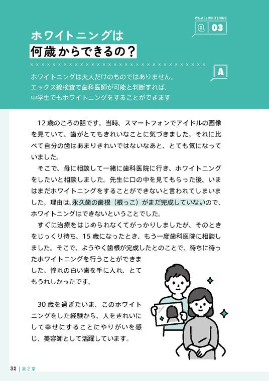 これまで患者さん向けとして詳しく語られてこなかったホワイトニングの基礎知識や最新事情について知ることができ、ホワイトニングに関心のある読者にとって貴重な一冊となっています。