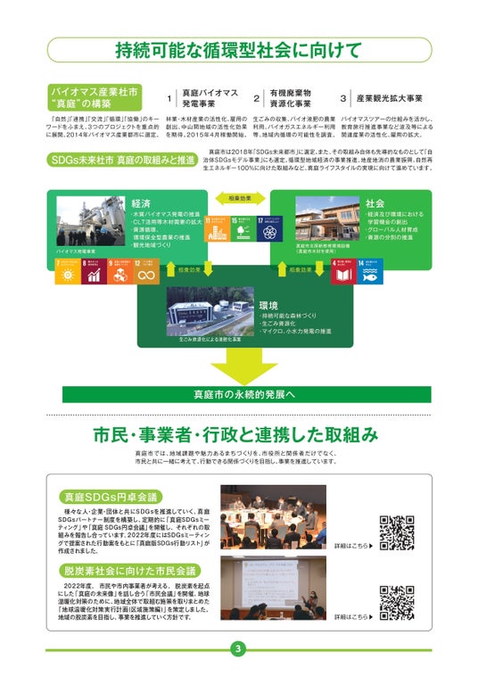 真庭市内のSDGsの取組みをしている企業の概要をまとめた学習用パンフレットも用意しており、説明では聞き逃しやすい細かな数字も記載しているので復習用としても活用できます。