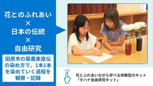自由研究のテーマ選びに悩む夏。そんな親子に向けて、花とふれあいながら学べる体験型のキット「タハナ自由研究キット」が登場しました。主役は、古くから日本人に親しまれてきた「輪菊」。田原市の菊農家直伝の染め方で、自分の手で1本1本を染めていく過程を観察・記録することで、理科や文化にまたがる学びを深められる内容となっています。