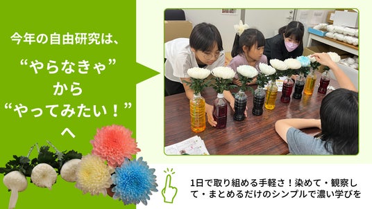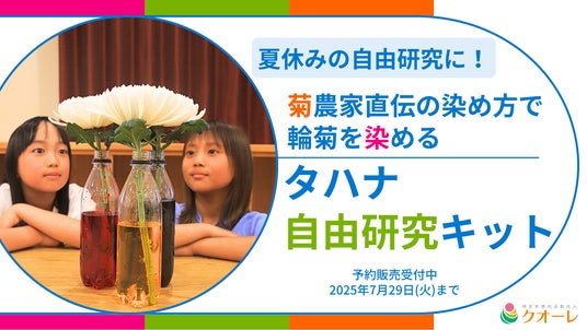愛知県田原市が運営する「タハナ」事業の認定事業者である、愛知県豊橋市のNPO法人クオーレは、2025年夏、小学生向けに花の染色体験を通じて伝統文化と科学を学べる「自由研究キット」の販売を開始します。菊農家直伝の染め方で輪菊を染める実験を通じて、自然の変化を五感で感じ、自由研究としてまとめることができる体験型キットです。