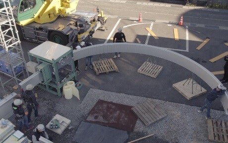 スチールアーチは、事前に部材を工場で加工し設計に合わせた部材を建てるため、工程を短縮することが可能となります。