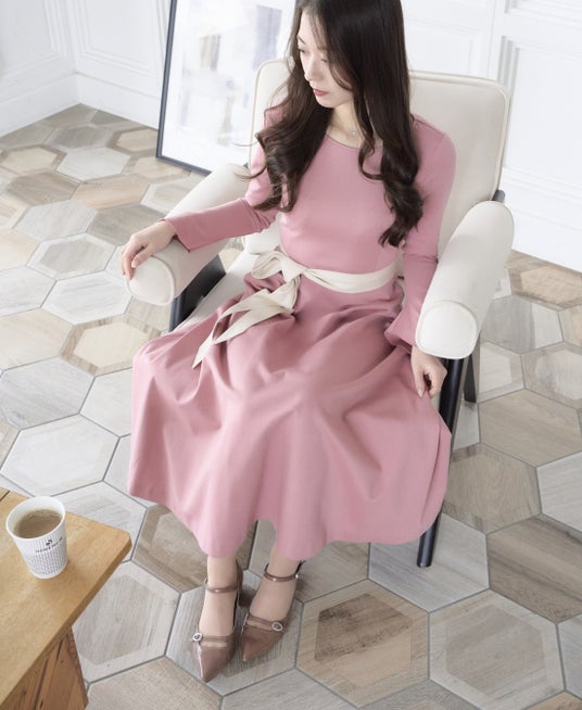 ◇ スタイルアップのウエストライン+取り外し可能なウエストリボン付き