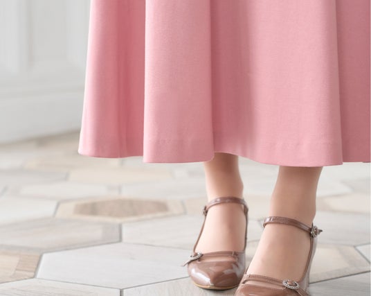 低身長だとスタイルが際立たず、子どもっぽい印象になりがち。そこで裾と袖にフリルを加えることで、手足を長く見せてスタイルアップを叶えました。上品なフリルからチラッと覗く足首は、より美しく映えます。フリルのカーブの長さにもこだわり、一着ごとに丁寧に仕立てています。さらにウエストラインを加えることで、ハイウエスト効果と華奢見え効果を演出。付属のリボンを結べばアクセントとなり、フェミニンな印象も楽しめます。