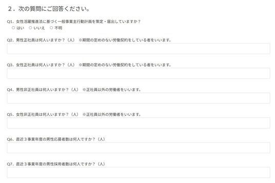 事業所が、えるぼし・くるみん・ユースエールの認定を受けることが可能であるか簡単な回答をもって判断するものです。