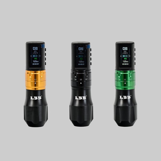 高品質プロ仕様タトゥーマシーン商品名:LBB S30 MAX ワイヤレスペン型タトゥーマシーン左からゴールド、ブラック、グリーン