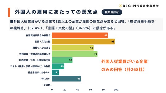 外国人雇用・在留資格に関する実態調査レポート:外国人雇用にあたっての懸念点