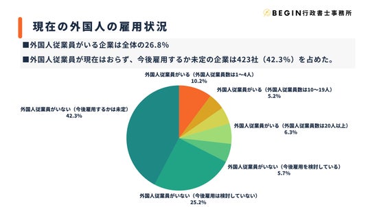 BEGIN行政書士事務所(所在地:東京都立川市、代表:服部貴志)は、全国の会社経営者・役員1,000人を対象に「外国人雇用・在留資格に関する実態調査」を実施しました。