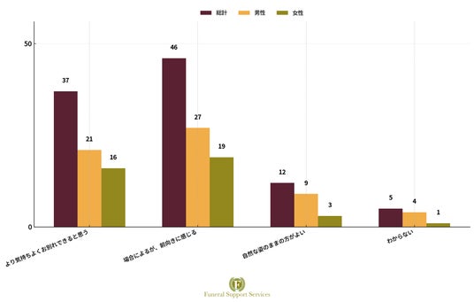 - 「安らかな表情でいてくれるとお別れがしやすい」という意見が多く、遺族の安心感を高める効果が期待できる