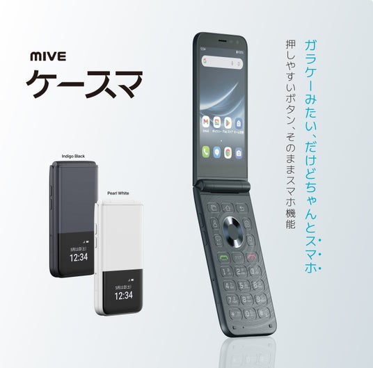そしてこの度、日本参入第1弾となる新製品「MIVEケースマ」は、“スマホ操作は不慣れだけれど、LINEなどのアプリは利用したい”というシニア層を主なターゲットとし、従来のケータイ(フィーチャーフォン)の物理ボタンによる操作性と、スマホの快適性を両立した、ケータイ型スマートフォンです。