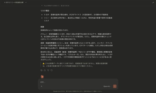 Claude DesktopからEDINET DBのデータを呼び出し、企業分析を実行している画面 2