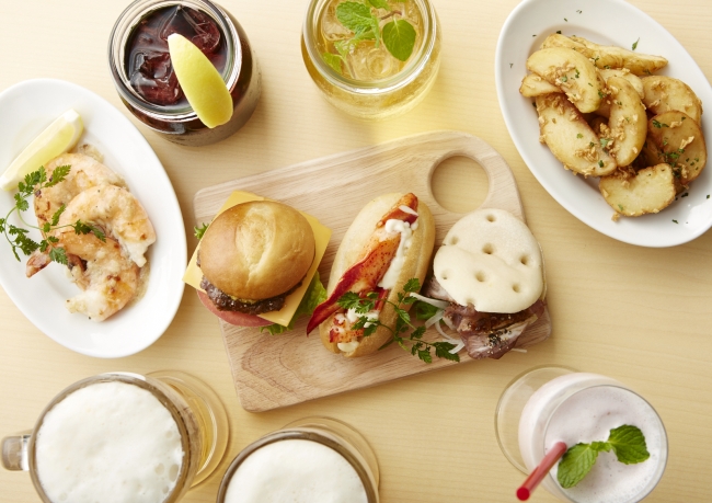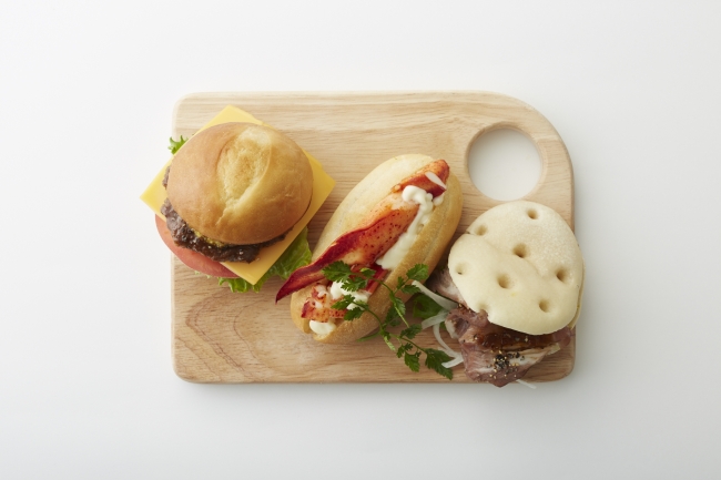 ハンバーガー×ロブスターバーガー×ローストポークのフォカッチャバーガーのトリオを直径7cmのサイズにし、お話ししながらでも食べやすい一口で召し上がっていただけるようプレートに仕上げました。1日1店舗10食限定でご用意致します。
