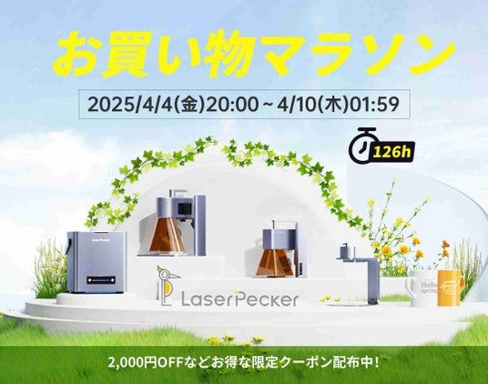 スマートレーザー彫刻機ブランド「LaserPecker」が運営する楽天公式店舗『東販ストア』にて、2025年4月4日(金)より開催される「お買い物マラソン」キャンペーンに参加いたします。今回のキャンペーンでは、人気モデル「LP2」「LP4」が20%オフに加え、さらにポイント2倍&期間限定特典付きで登場!