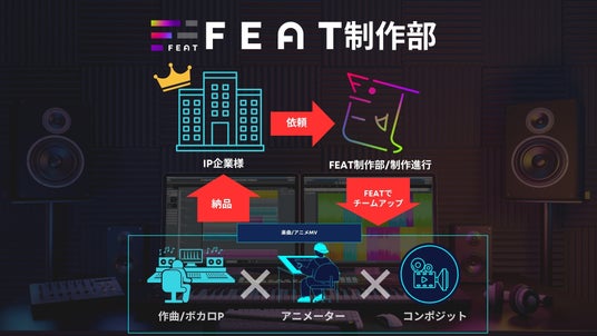 このたびの資金調達を機に、FEATはこれまでの「ユーザー同士によるコラボレーションプラットフォーム」という枠組みを越え、企業様からのアニメーションやミュージックビデオ(MV)制作のご依頼にも対応できる体制を整えました。