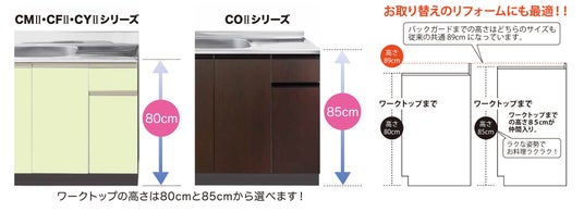 バックガードまでの高さは80cmタイプと同じ89cmなので、入れ替え時もスムーズです。