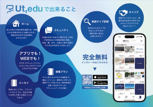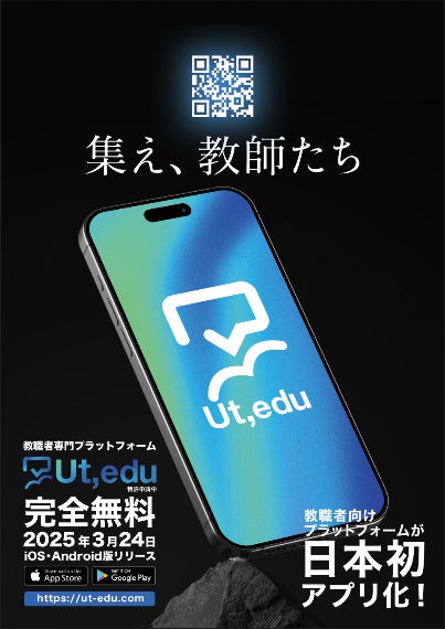 株式会社System Yacht(本社:埼玉県吉川市、代表取締役:佐々木瑛介)は教職者(幼・小・中・高の教諭、保育士、大学教授、教職課程に属す学生)を対象とした総合プラットフォーム「Ut,edu」(ユーティーエデュ)を2025年4月21日に日本初アプリリリース(当社調べ、2025年4月30日までの日本国内における「教職者専門総合プラットフォーム」として)しました。