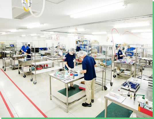 KONOIKEグループの専業部門である鴻池メディカルは、病院や医療機器メーカー向けに高度な物流サービスを提供しています。全国に10カ所の滅菌センターと複数の物流拠点を展開し、医療機器の受け取りから洗浄、保守、出荷までを一貫して同一施設内で行うワンストップモデルを採用。これにより、トレーサビリティの確保と衛生関連の法令遵守(コンプライアンス)を実現しています。