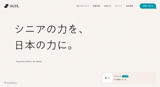 sen.は、これらの事業を通じて、企業とシニア人材の双方に新たな価値と機会を提供し、人々が年齢にかかわらず活躍し続けられる社会の実現に貢献してまいります。