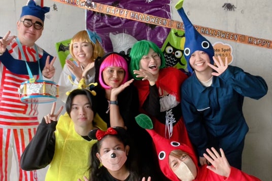 2025年10月のハロウィンレッスン前 ヘレナ英会話 チーフディレクター 松本マークとそのスタッフ