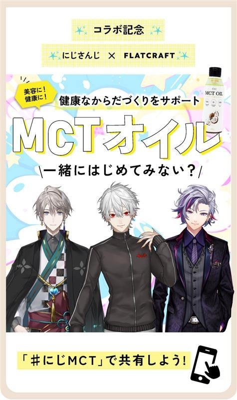 ココナッツ由来100%・中鎖脂肪酸100%の高品質MCTオイルを展開するヘルスケアブランド「フラットクラフト」は、VTuberグループ「にじさんじ」に所属する人気ライバー、甲斐田晴さん・葛葉さん・不破湊さんによるコラボYouTube配信を2025年9月8日に開催いたします。