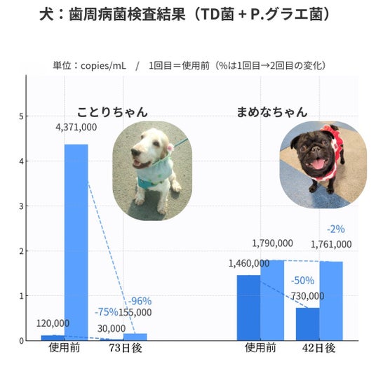 - 犬猫の口腔内で菌の減少をPCR検査でも確認