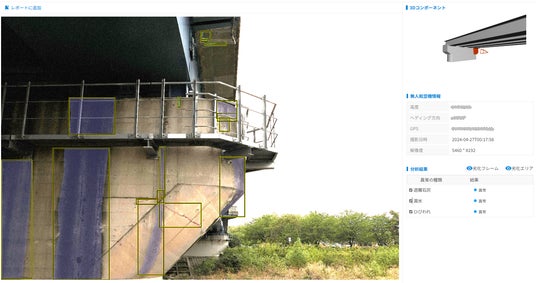 特に橋梁点検では最大7項目の劣化診断をAIが迅速に診断し、報告書作成までの一元管理を実現。