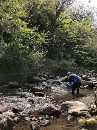 中央:地域おこし協力隊杉本くるみ 地域の方と談笑する姿