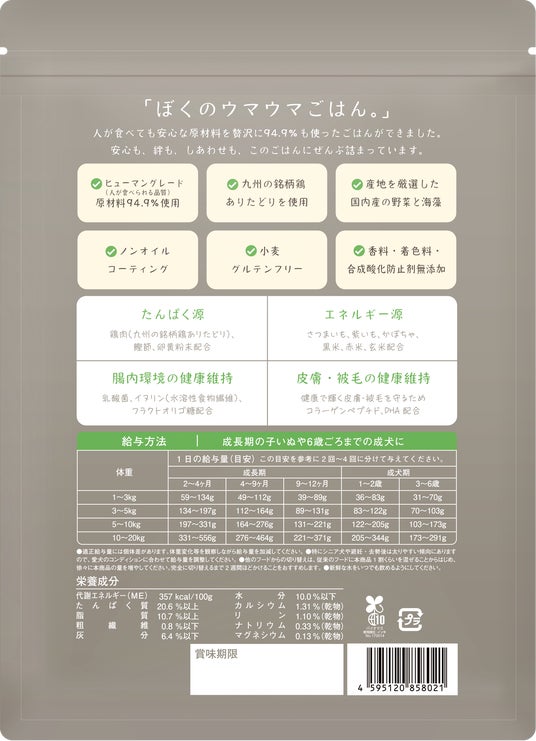 THE HUMAN GRADE ぼくのウマウマごはん。 は、こうした日常の中で生まれる素朴な疑問と、「この子に自分と同じものを食べさせたい」という飼い主のまっすぐな想いを起点に開発されました。