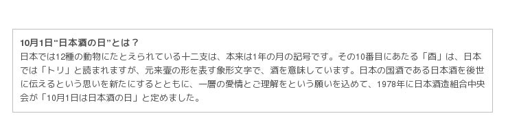 日本酒造組合中央会(東京都港区、会長:篠原成行)は、2016年10月1日(土)に、「全国一斉 日本酒で乾杯!」を開催しました。本イベントは“日本酒の日”である10月1日に、全国一斉に日本酒で乾杯を行い、日本酒の美味しさ・楽しさをより多くの皆さんに経験していただく事を目的としたイベントで、今年で二度目の開催となります。