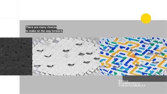 このメッセージをひとつのビジュアルだけで表現するのは容易ではありません。今回のブランドムービー制作にあたり、私たちは得意とする2Dモーショングラフィック表現にとどまらず、3DCGや作画アニメーションなどの新しい技法にも積極的に挑戦しました。リッチでエモーショナルなビジュアル表現を取り入れつつ、メッセージがロジカルかつ的確に伝わるよう、各要素のバランスに細心の注意を払いながら演出しています。