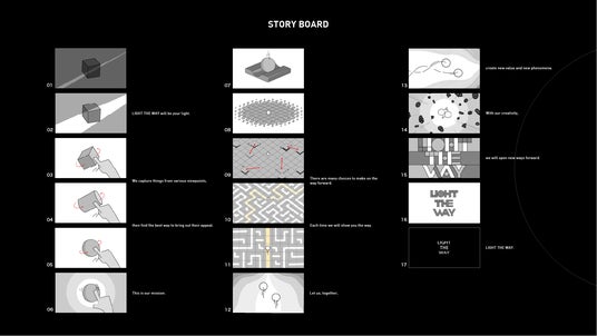 このムービーでは、LIGHT THE WAYがクライアントと共に新しい価値を創造するプロセスを描いています。冒頭では、企画段階の抽象的なアイデアがオブジェクトとして登場し、私たちが多角的な視点からその魅力を見い出し、試行錯誤を繰り返して磨き上げていきます。アイデアが具象化した後も、私たちはクライアントと伴走し続け、まだ見たことのない新たな価値や現象を共創していきます。