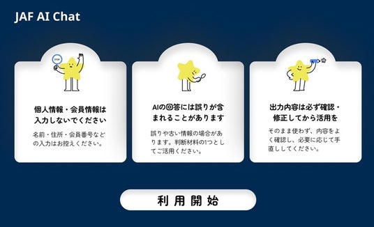 新しく生まれ変わった「JAF AI Chat」のスタート画面