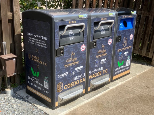 今回設置されたIoTスマートゴミ箱「SmaGO」は、太陽光発電パネルと蓄電機能を備え、内部に溜まったゴミを約5分の1に自動圧縮することでゴミ箱からのあふれ出しを防止します。また通信機能により満杯状況を遠隔監視できるため、不要な回収を削減してゴミ収集業務の効率化が可能です。さらに各面の広い側面には自由にデザインを施すことができ、分別マナー啓発やスポンサー企業のロゴ掲示による運用コスト削減にもつながります。実際に設置されたSmaGOにはCOEDO KAWAGOE F.C.のチームカラーやロゴがあしらわれており、地域の一体感を醸成しながら環境美化に貢献するツールとなっています。