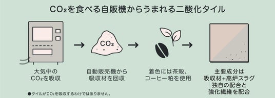 アサヒ飲料・日本エムテクス 共同開発「CO2を食べる自販機」で回収したCO2活用の内装用タイル