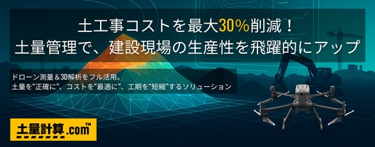 土木・建設現場で大きな課題となる「土工事費の増大」と「工期の長期化」を解決するため、大手ゼネコンをはじめとする数多くの現場で実績を持つ東海エアサービス株式会社(本社:愛知県名古屋市名東区、代表取締役:國本洋輔)は、このたび、土量管理の最適化を支援する新サービス「土量計算.com(TM)」を開発し、提供を開始いたしました。ドローン測量や3D解析技術を駆使し、工事の掘削・盛土・残土処理のプロセスを可視化・効率化することで、残土処理費用や工期を最大30%圧縮いたします。