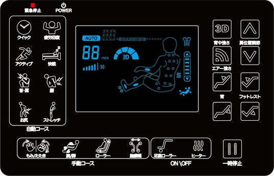■簡単リモコン操作見た目でわかる簡単操作。直感的なリモコンで、スムーズに使えます。マッサージの終了時間も確認可能です。