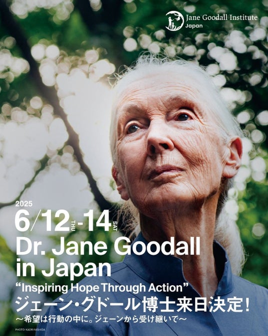 この来日に合わせて、ジェーン・グドール インスティテュート ジャパンでは、6月12日~14日の3日間、来日特別イベント「Hope in Action──希望は、行動の中に。ジェーンから受け継いで」を開催します。