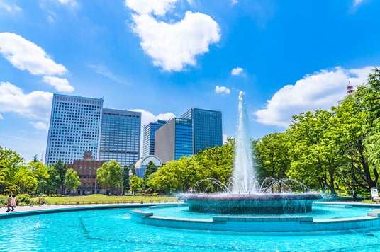 日比谷公園から見える日比谷国際ビル、日本プレスセンタービル等