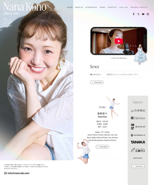 同時に公開されたオフィシャルサイト(https://nanakono.com)では、高野自身のこれまでのポートフォリオのほか、活動を応援する企業や学校のロゴも掲載されており、エンタメ×地域×教育の架け橋として注目が集まっています。