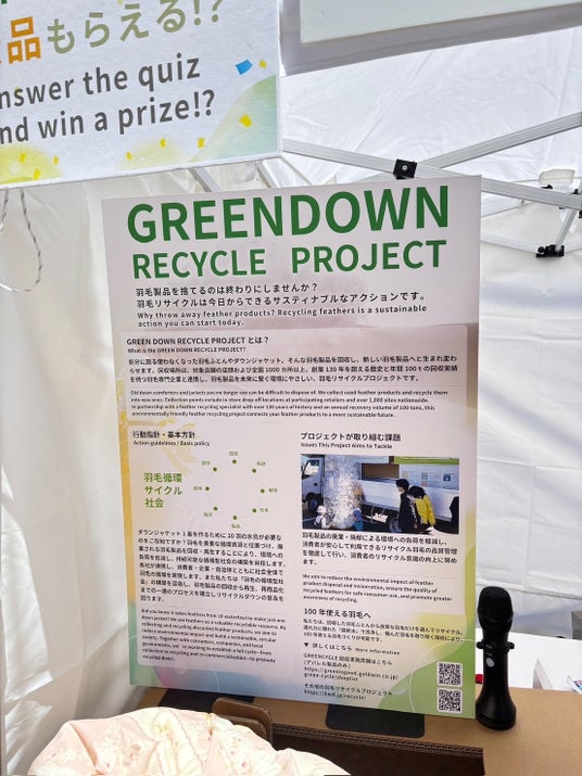 式典会場のトークセッションでは、ゴールドウィン(株)代表の渡辺社長から3社で取り組む羽毛回収文化について、説明していただきました。
