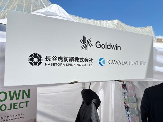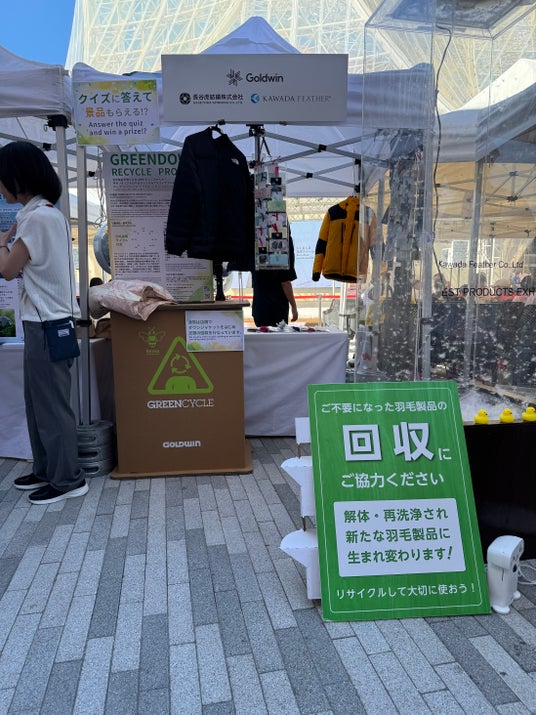 そこで、ゴールドウィン(株)×河田フェザー(株)×長谷虎紡績(株)の3社で合同ブースを設営させていただきました。