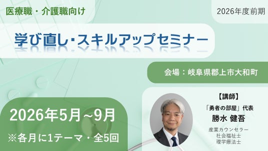 オンラインカウンセリング「勇者の部屋」(代表:勝水健吾)は、株式会社ウイング(代表取締役:山田奈津美)が運営する「スタジオ ウイング」との共同企画として、2026年5月より、岐阜県郡上市にて医療職・介護職向けの「学び直し・スキルアップセミナー(2026年度前期)」を開催いたします。