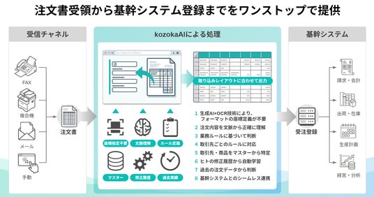 株式会社kozokaAI(本社:東京都、代表取締役:藤井星多)は、製造業・物流業・卸売業における受注業務の課題を解決し、企業の基幹システム(ERP)の自律化を実現する「kozokaAI 受注AI-OCR」の提供を開始いたしました。