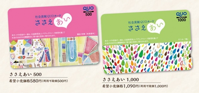 「環境」「子ども」「社会福祉」「緊急支援」の分野において当社があらかじめ選定したNPO法人などによる7つのプロジェクトの中から購入時に応援したいプロジェクトをお客様に指定いただき、1枚あたり40円が当社からパブリックリソース財団を通じて各プロジェクトに寄付されるQUOカードです。