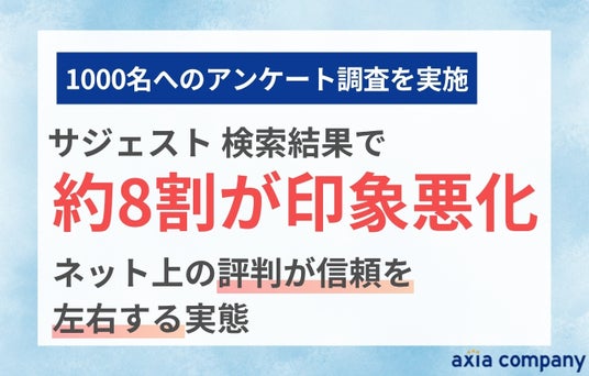 そこで今回は、株式会社アクシアカンパニーが、全国の男女1,000名を対象に「ネット上の評判が信頼に与える影響」に関するアンケート調査を実施しました。