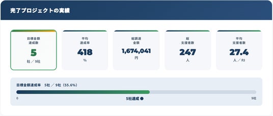 今年度の支援対象9社のプロジェクトが全て掲載終了しました。以下に全体実績をご報告します。