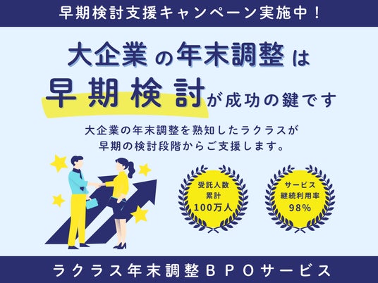ラクラス株式会社(本社:東京都、代表取締役社長:村田 一)は、大企業向けに提供する「ラクラス年末調整BPOサービス」において、2026年度対応分の受付開始および早期検討支援キャンペーンの実施を開始しました。