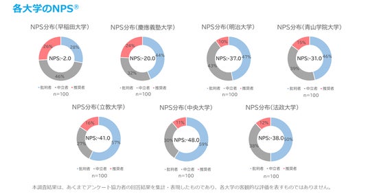 NPS(R)については早稲田大学が最も推奨者が多く、総合的に高いスコアとなりました。